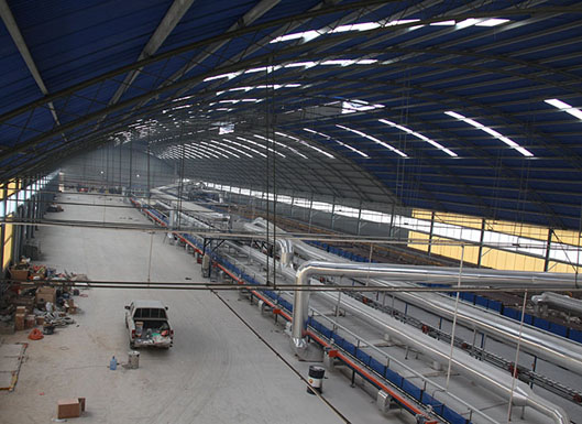 我公司引進(jìn)生產(chǎn)設(shè)備,從原料到產(chǎn)品包裝一系列的保證了生產(chǎn)過程中的穩(wěn)定,電子稱進(jìn)料設(shè)備,保證了原料配比的準(zhǔn)確無誤,為生產(chǎn)合格的產(chǎn)品提供保證,超大噸位球磨機(jī),確保了原料在研磨過程中,細(xì)度達(dá)標(biāo),為下一步的生產(chǎn)提供了合格的原料,原料制粉采用了噴霧干燥塔,制作的粉料均勻,含水量低,無雜質(zhì),適合壓制成型;而壓機(jī)呢,引進(jìn)了1500T全自動壓機(jī),壓制出來的磚坯平整、光滑,尺寸無誤差,適合燒制,為了保證產(chǎn)品的出廠,我公司又投入巨資引進(jìn)超長超寬截面燒制窯爐,窯爐采用天熱氣燒制,保證了磚體在燒制過程中穩(wěn)定,不變形,無裂紋,無翹曲及大小頭,平整光滑,人工包裝保證了出廠的每塊磚都完全篩選一遍,確保無一塊不合格產(chǎn)品流向市場。